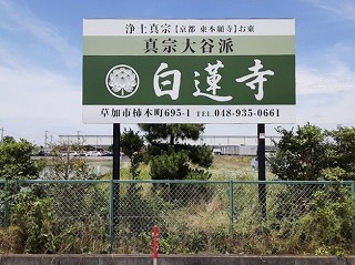 そして首都圏開教を志し草加市長栄町に4畳半2間の草加開教所白蓮寺を開設しました。 外見は全くの民家でしたのでお寺を訪ねてこられる方で迷われる方も多く、2間の平屋をご覧になって不安そうな表情をされてた方もおられました。その小さな白蓮寺において、深く遠き仏縁によりて「再会」をしました一人一人のご門徒の皆様と共に、20年間聞法を続けてまいりました。そして平成10年、ご門徒の方々の願いと、お力添えにより草加市柿木町に1階納骨堂、2階本堂の新本堂を建立する事が出来ました。